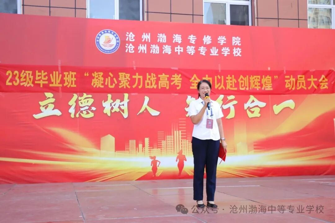 升学部副部长刘海燕讲话。她从高考政策解读、备考规划指导两方面入手,为学子们梳理备考方向:“学校将全力保障高三教学资源,组建骨干教师团队精准辅导,希望同学们紧跟老师节奏,夯实基础、科学备考。”