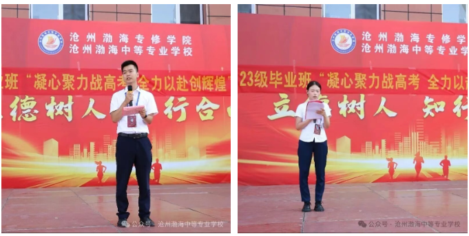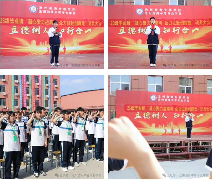 学生代表23升学护理一班尚雅玉上台发言,她以自身学习经历为例分享心得,并号召全体同学 “珍惜每一分每一秒,用汗水浇灌梦想,用行动证明自己”。学生代表25预科护理班孙智爱带领全体23级毕业班学子举起右拳,庄严宣誓。铿锵有力的誓言回荡在操场,这是他们青春最坚定的承诺。