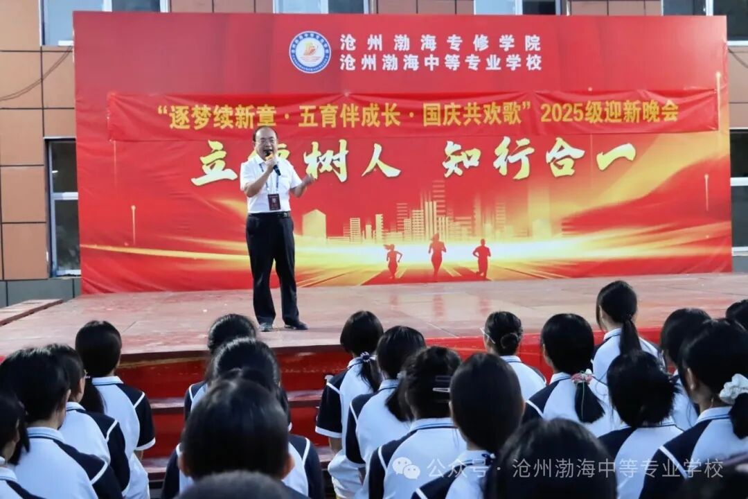 副院校长王新华致辞。他对2025级新生的到来表示了欢迎,强调了学习的重要性,并希望在未来的校园生活中,同学们都能各展所长,充分挖掘自己的潜力,都能够好好学习,学有所获,最后他相信在学校的精心培养下,每一名渤海学子都能成长为素质高、技能强的有为青年,为祖国的发展贡献力量!