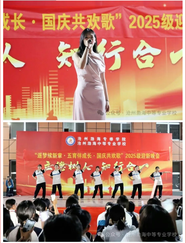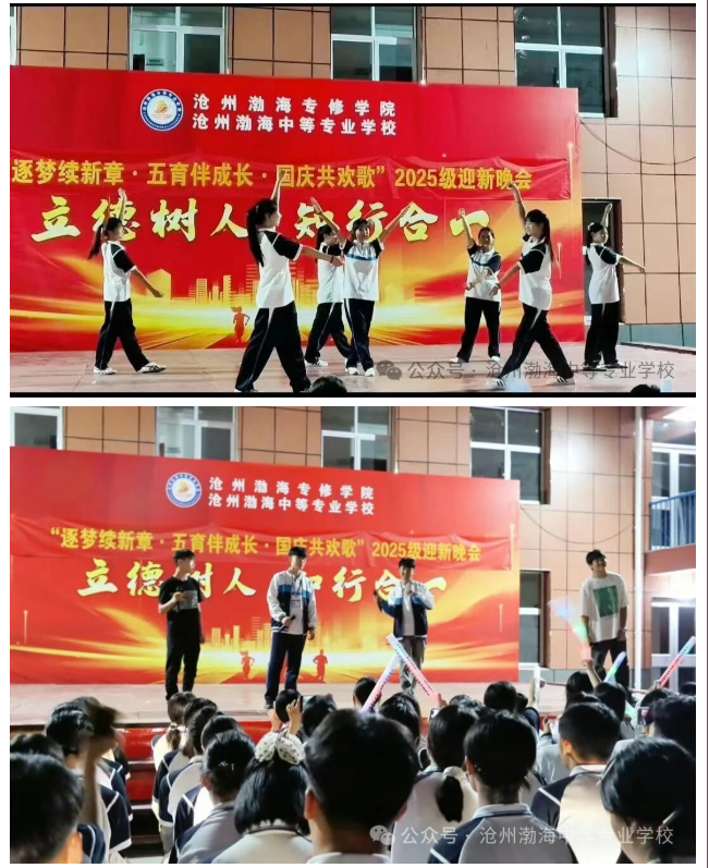 金秋送爽,丹桂飘香。在举国欢庆中华人民共和国成立76周年之际,为欢迎2025级新同学的到来,展现我校学子昂扬向上的精神风貌,推进“五育并举”育人理念深入实践,9月25日晚,由校团委联合学生处组织的“逐梦续新章·五育伴成长 国庆共欢歌”2025级迎新晚会在我校操场隆重举行。学校相关领导、部分教师代表与2025级全体新生共同观看了这场青春洋溢、精彩纷呈的文艺盛宴。