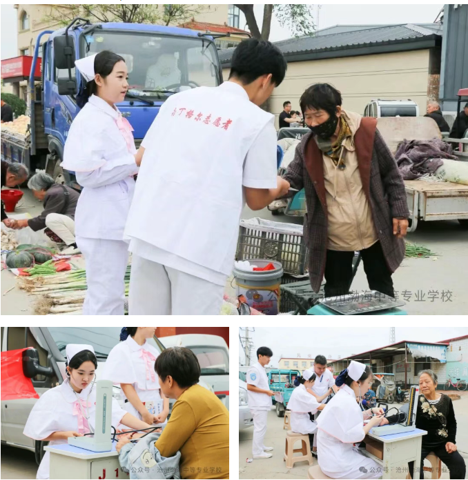 为普及急救知识,提升基层群众健康意识,9月27日上午,我校医护系专业教师杨超、刘哲龙带领中国南丁格尔志愿护理服务总队沧州渤海中等专业学校志愿护理服务队6名队员,走进风化店乡集市开展急救护理宣传活动,将专业的医疗护理服务送到群众身边。