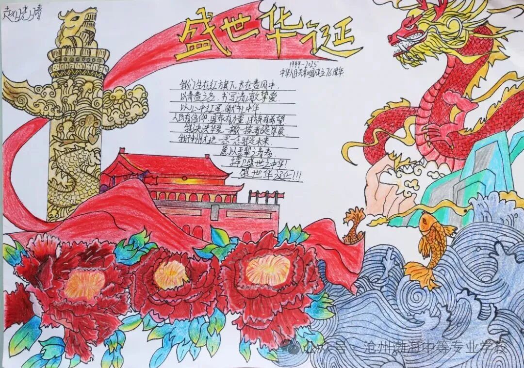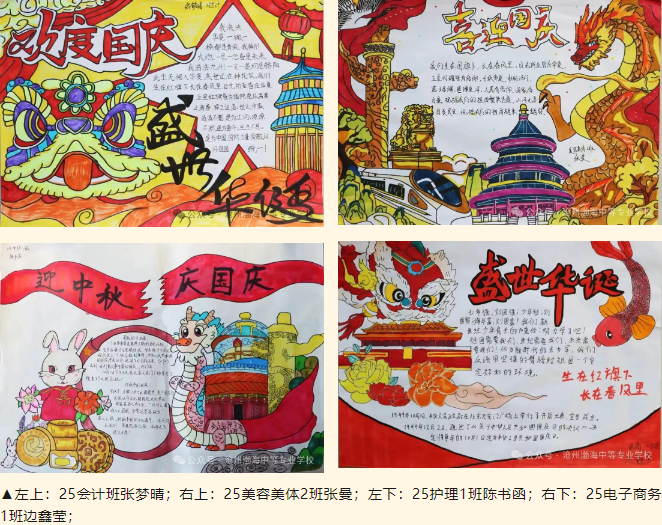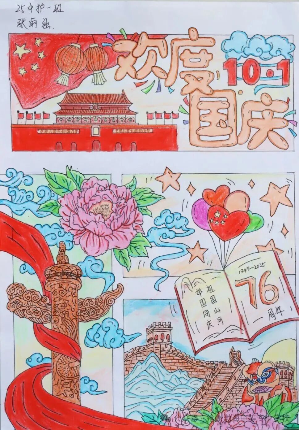 为庆祝中华人民共和国成立76周年,弘扬爱国主义精神,厚植家国情怀,校团委在国庆假期期间组织中专部2025级全体学生开展了以“迎中秋,庆国庆”为主题的手抄报创作活动。活动得到了同学们的积极响应,共收到投稿作品1000余幅。近日,特精选部分佳作刊登本平台,供大家共同赏析。