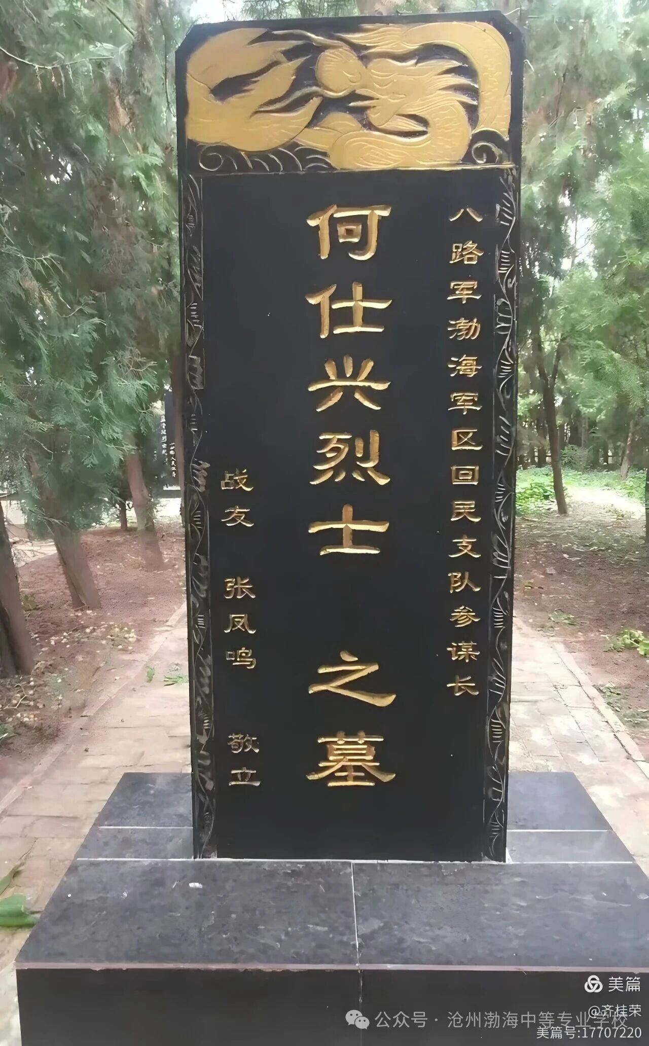海兴群众还积极帮助回民支队抬伤员,留在家里养伤,把自己舍不得吃的鸡蛋煮了送给伤员吃。尤其是对牺牲的干部战士,冒着风险帮助掩埋。1945年1月的一天,回民支队参谋长何仕兴奉命带队护送刘格平去渤海区工作,途中遇敌不幸受重伤,被抬到抗战堡垒村李良志村后,因伤重不治于2月17日牺牲。消息传来,当地回汉群众悲痛万分。李良志村70多岁的李玉清老人献出自己的棺材为烈士装殓。回族老乡按回族仪式为何仕兴烈士举行了隆重的葬礼,把烈士遗骨安葬在自己村头,把墓土培的又高又大。这位四川老红军现在依然长眠在附近的曹庄子烈士陵园内,每逢过年过节,当地群众都去祭扫,表达对这位烈士的敬仰和怀念。