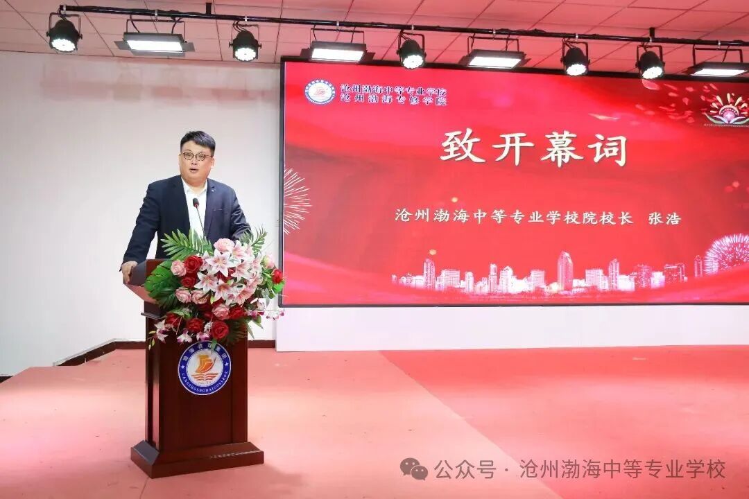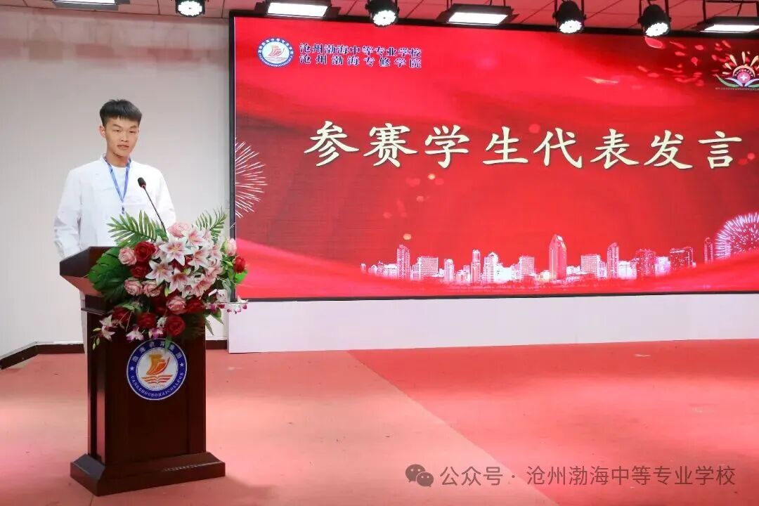 沧州渤海中等专业学校院校长张浩首先代表学校对大赛的开幕表示热烈祝贺,对莅临现场的各位领导、嘉宾、裁判员以及师生表示欢迎与感谢。他强调,本届护理专业技能比赛由市教育局、市人社局联合主办,我院校承办,这既是信任与肯定,更是责任与动力。院校已全面做好赛事组织与服务保障,致力于营造规范、公平、公正的竞赛环境。他进一步阐释,护理是集知识、技能与人文关怀于一体的崇高事业,希望选手们珍惜机会,以饱满的热情和沉稳的心态投入比赛,赛出风格、水平和友谊,展现工匠精神。同时,他呼吁裁判员严格执裁、公正评判。最后,张浩院校长希望同学们以大赛为起点,将个人理想融入国家发展,努力成长为德技并修的高素质技能人才,为健康中国建设贡献青春力量,并预祝大赛圆满成功、选手取得优异成绩。