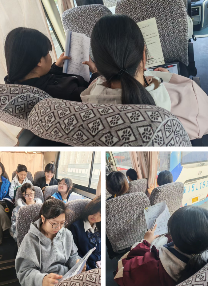 每辆车上都有护考老师全程跟车,认真清点人数、提醒物品携带。同学们在车上仍努力复习,不懈怠,那一张张专注的面孔、一声声铿锵的誓言,展现了渤海学子迎战高考的坚定决心。