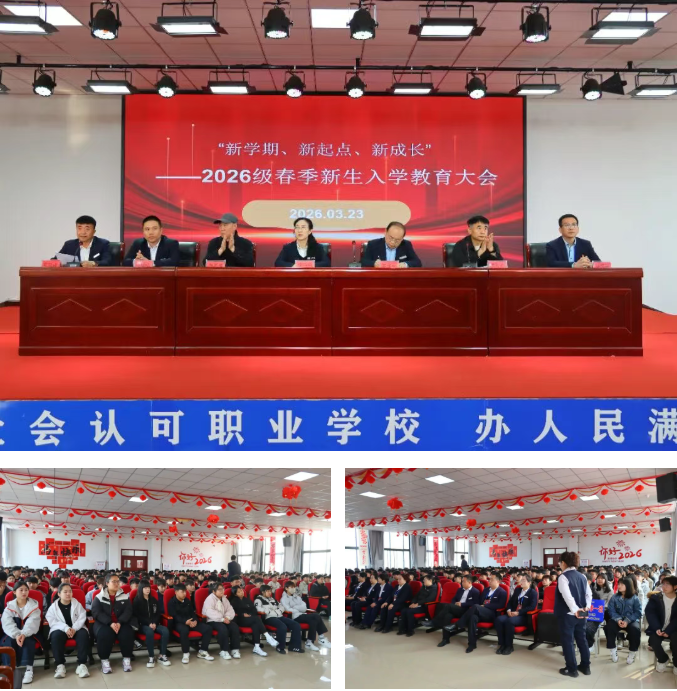 春和景明,万象更新。3月23日上午,我校2026级春季新生入学教育大会在知行楼四楼报告厅隆重召开。本次大会以“新学期、新起点、新成长”为主题,旨在帮助新生尽快适应校园生活,明确学习目标,筑牢纪律意识,为未来的成长之路奠定坚实基础。