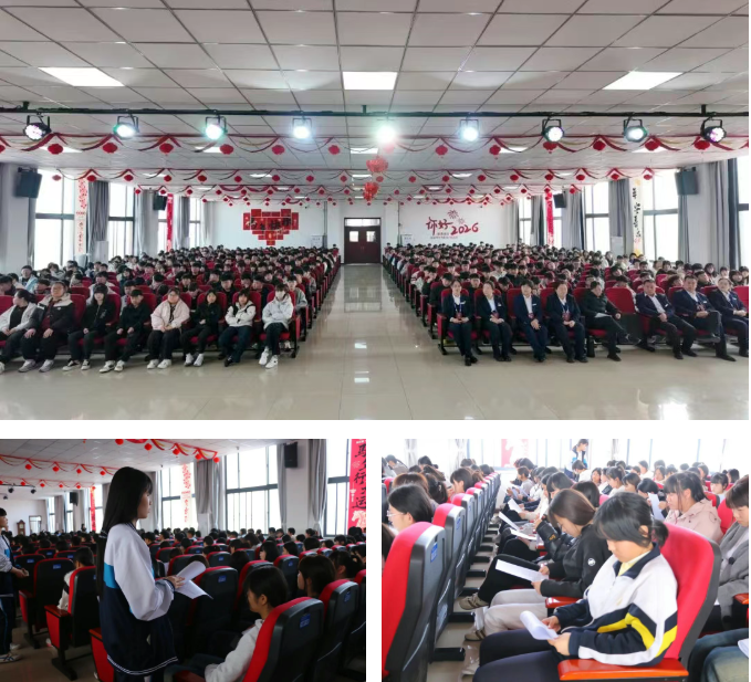 副院校长王新华、李俏梅,学生处处长于万卿、韩德禄,教务处副处长兼升学部部长徐振刚、教务处副处长兼中专部部长孙国刚,各系部负责人及德育主任出席会议。全体2026级新生及分管班主任参加会议。