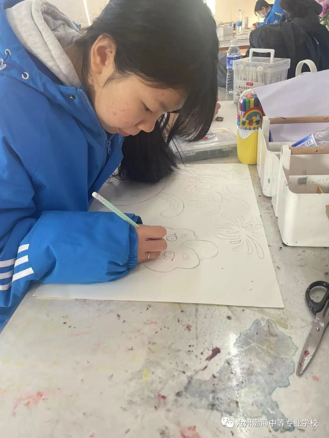 比赛当天,参赛选手在绘画实训室纷纷拿出自己的看家本领,多彩的画笔在指尖游动,洁白的纸张变得妙趣横生。主题鲜明的画面,独具魅力的画风,在快乐中学习知识,检验成果,在画作中张扬个性,记载时光,表达了同学们对生活和艺术的热爱。